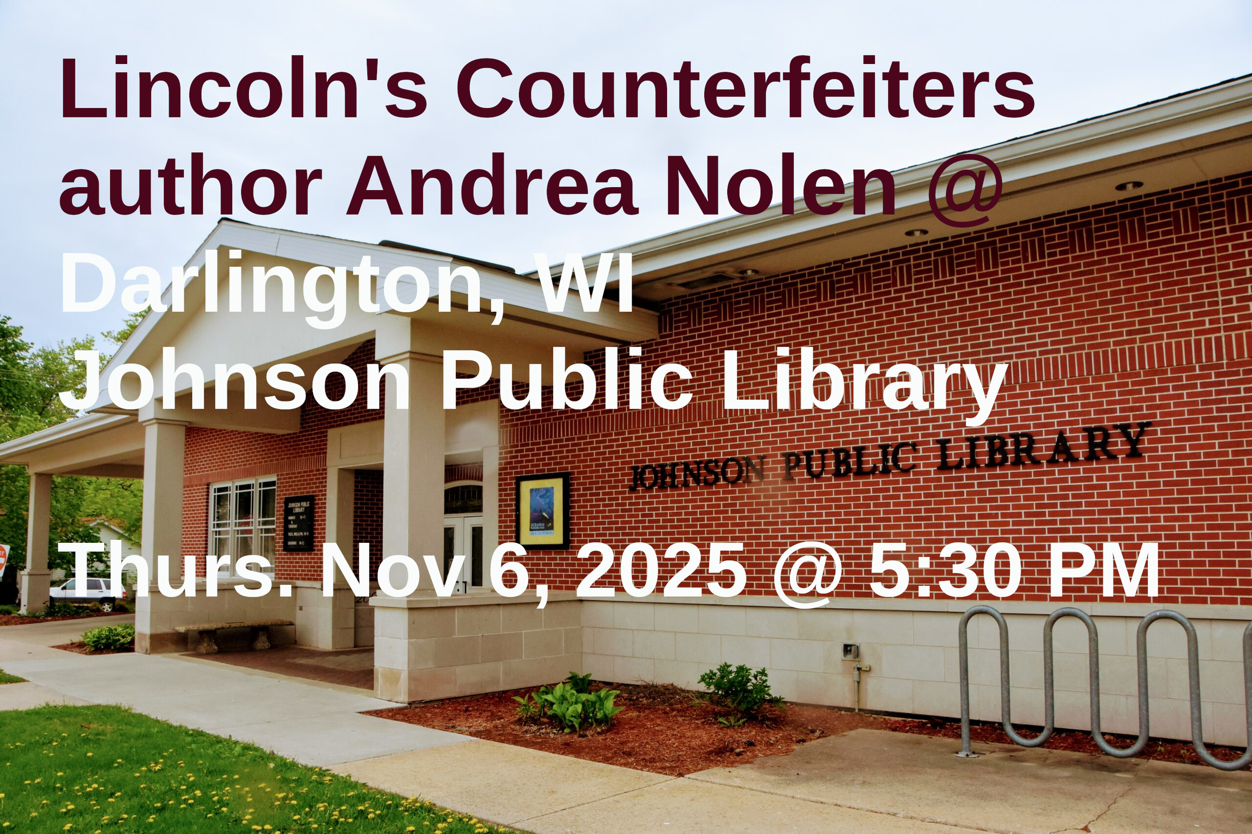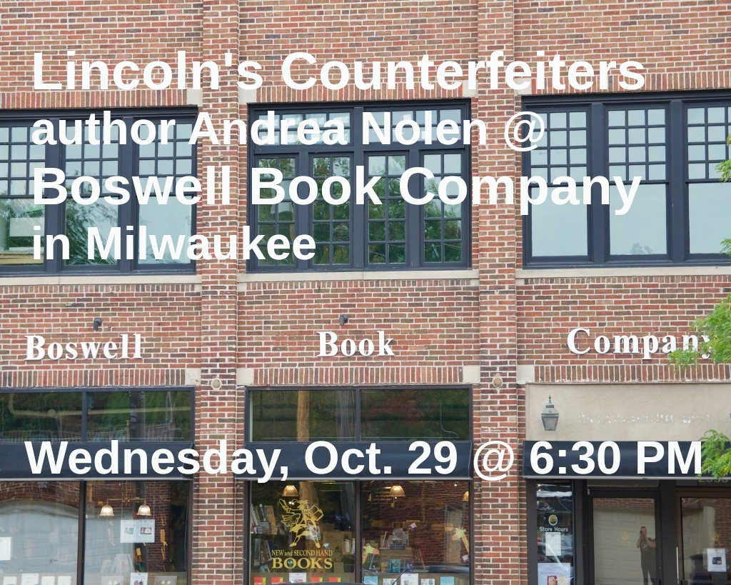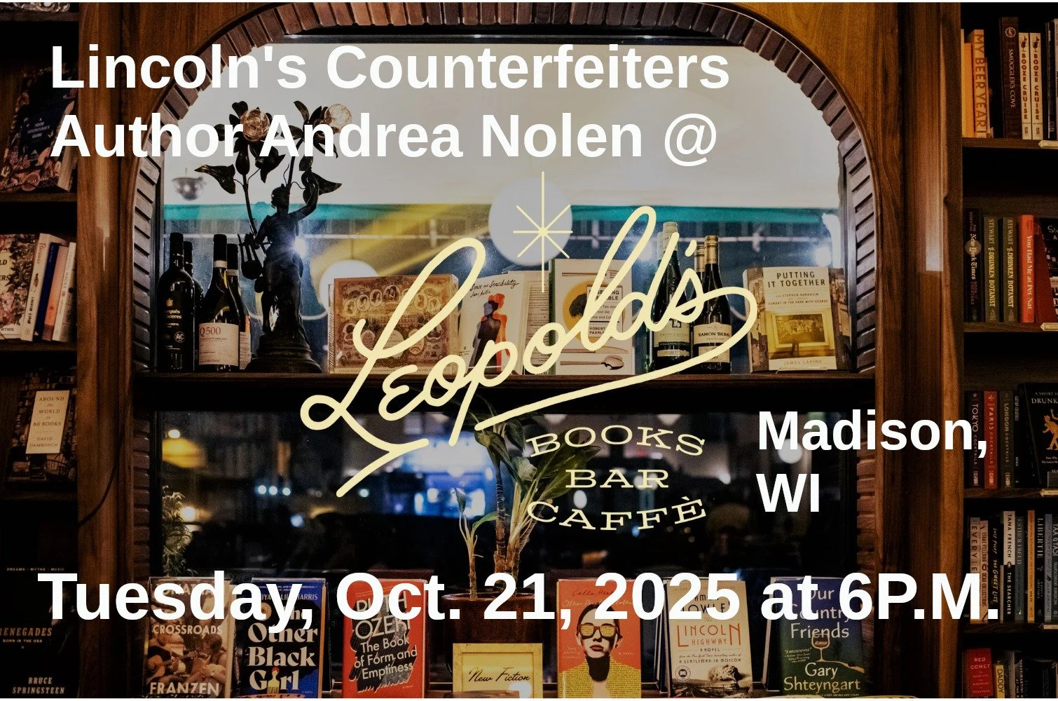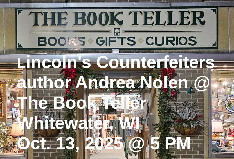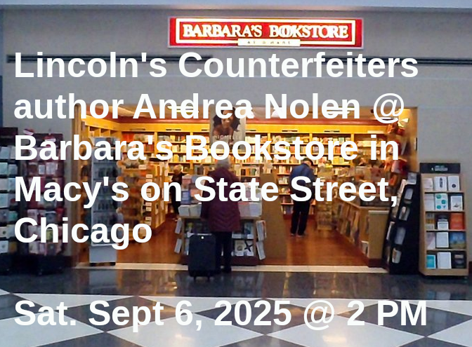 Barbara’s Bookstore in Macy’s on State Street in Chicago will host me for a book signing on September 6th! A bookstore near the heart of the action in Lincoln’s Counterfeiters— an historic event, don’t miss it!