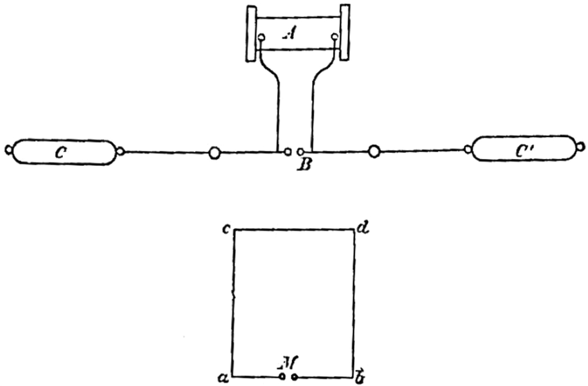 D’Arsonval used a primitive, but effective, set-up to conduct his experiments. Basically, a bit of animal tissue finished an electric circuit which was connected to a smooth AC current. D’Arsonval could mechanically control and record this AC current. (His smooth reading apparatus was an innovation in itself.) D’Arsonval’s set-up meant that either side of the tissue there were wires carrying a current.