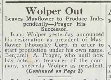 Benjamin A. Prager was almost certainly a white-collar criminal, and was tried for serious financial crimes in Massachusetts. I cannot find out the outcome of his 1922 trial without traveling to MA, however I can say that the Supreme Court in Suffolk County, MA felt the allegations against him substantial enough for the trial to go forward when Prager tried to have the case dismissed. Allegations were very specific: Prager used his position as a director at the Boston-based Cosmopolitan Trust Company to embezzle $700,000 with which to fund Mayflower and another firm called the Rainbow Film Company. (Prager also allegedly stole at least another $800,000 to fund a rash of amusement companies in New England.) Wolper made Prager Mayflower’s treasurer, a move he would soon regret, but which had positive consequences for McKay: