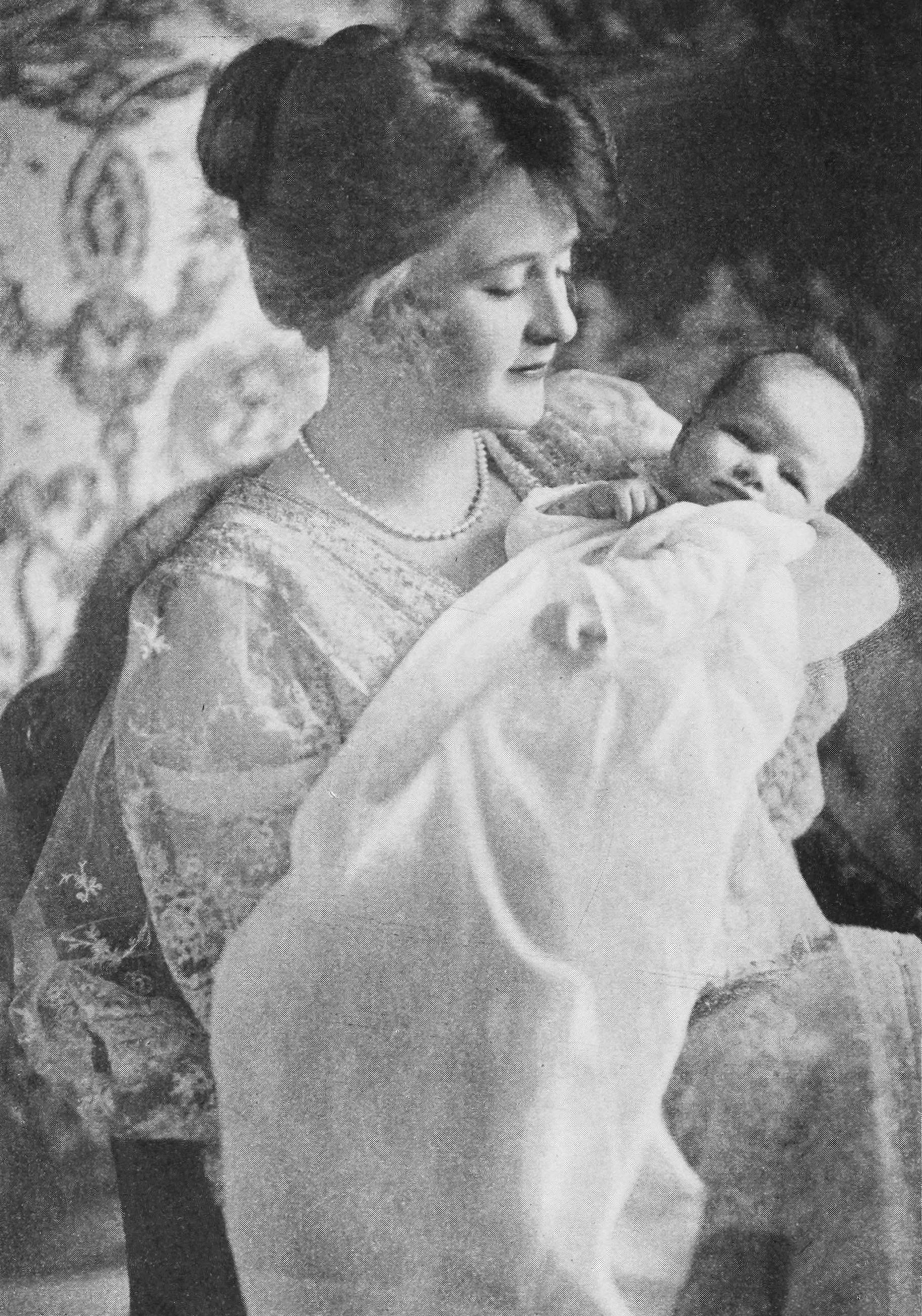 Showgirl Billie Burke with her infant daughter by Ziegfeld. Once the money trouble hit, Burke could play an endless “Glinda the Good Witch” role for her patron Post’s spoiled youngest daughter, Dina Hutton. Burke is pictured in very “Lucy Duff Gordon” lace.
