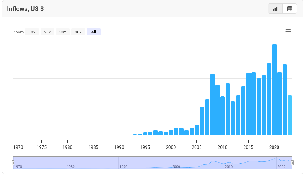 Foreign Direct Investment into India, 1970-Present. macrotrends.net