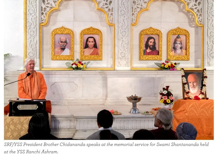 Photo from a Self-Realization Fellowship memorial service. Beatles gurus on LHS.